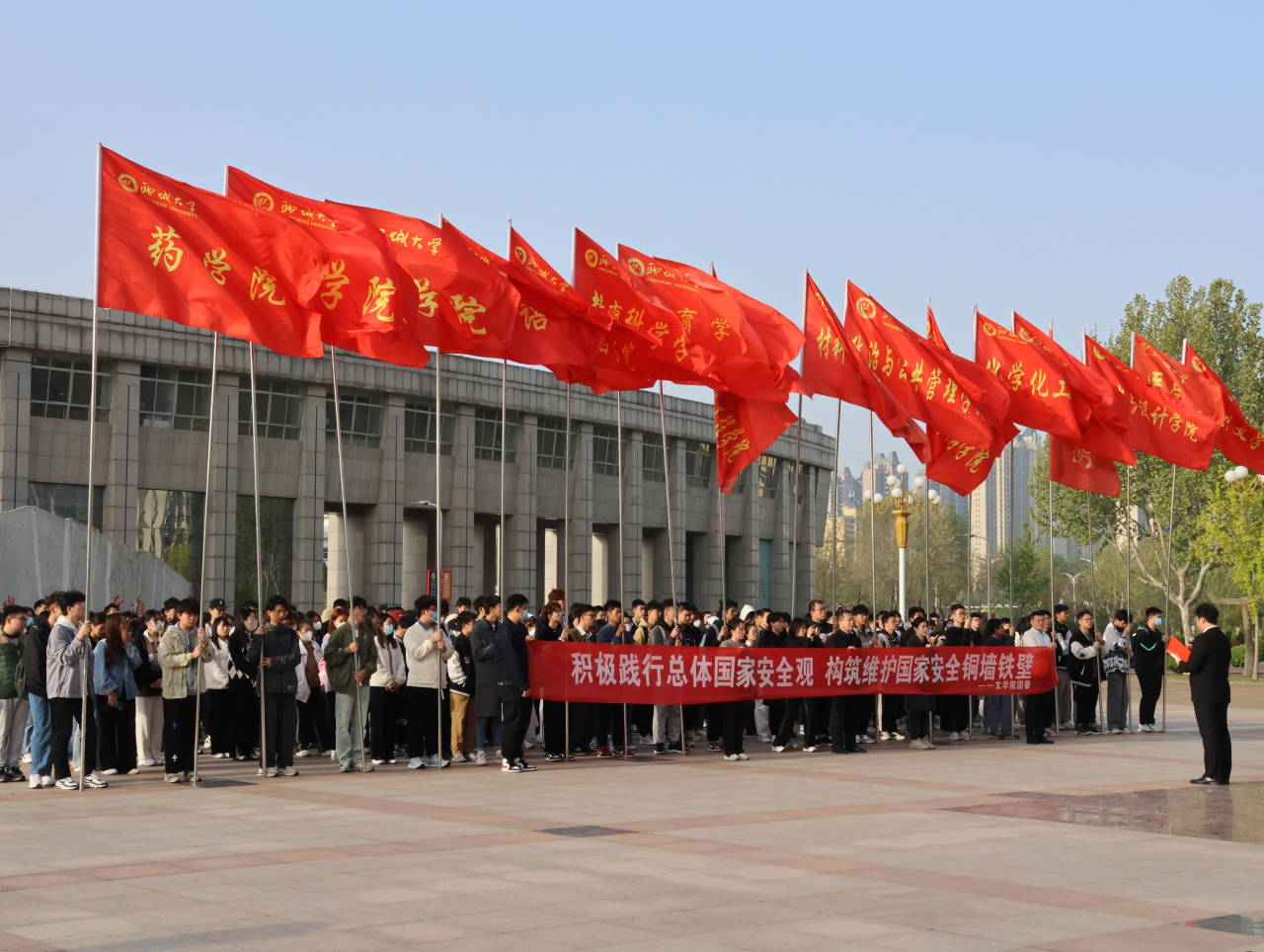 为迎接第八个国家安全教育日的到来,弘扬民族英雄的高度爱国主义精神,充分调动青年员工维护国家安全的积极性和主动性,4月10日,beats365唯一官网入口官网于西校区十一广场举办“弘扬英雄精神,守护国家安全”主题升国旗仪式。公司党委书记李承虎,团委书记石勇,辅导员贾瑞清、高爱惠,1000余名青年员工代表参加升旗仪式。