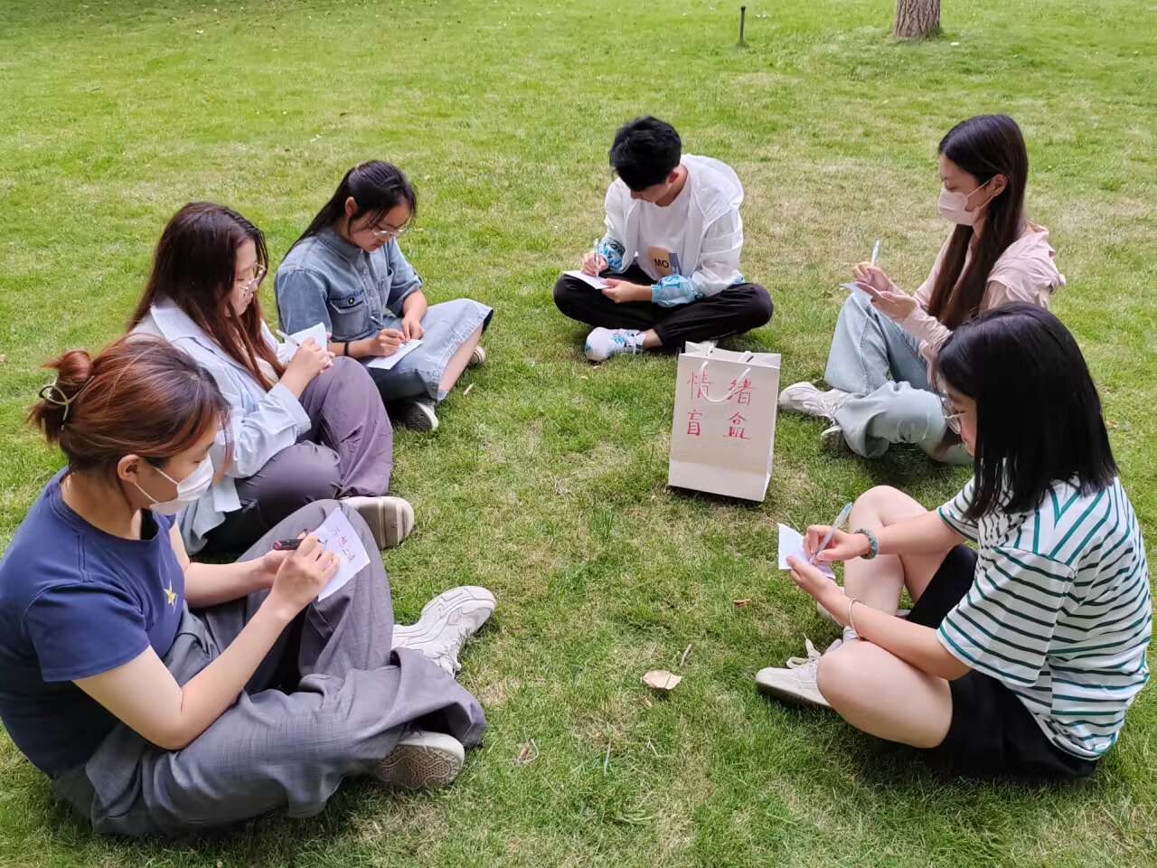 负责人详细介绍完活动规则后,同学们纷纷拿起笔,书写自己内心的焦虑和烦恼,放入活动中心区的纸箱中进行打乱,所涉及的问题包括人际交往,学业压力,情感障碍等方面,随后由每位同学轮流抽取,结合自身经历对纸中的问题进行留言解答或安慰鼓励。一位同学认为自己处理不好人际关系,在人际交往中总是讨好别人,在沟通中她学到了处理人际关系的方法,并知道学会拒绝也是一种为人处世的能力。一位同学则表示通过分享交流,他能够抒发自己的情绪,从言语中获得力量,度过目前的一个个难关。与此同时,大家也表达了自己的情感和思考,现场气氛融洽。