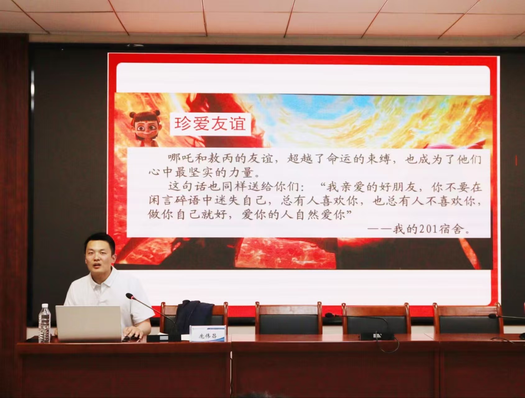 分享会上,庞伟昌以电影《哪吒之魔童降世》中主人公哪吒的责任意识为切入点,结合自身基层工作经历,强调公务员职业需要的奉献精神与综合素养。他通过解读2025年度选调生招录政策,详细介绍选调生报考条件、选拔流程和备考要点,鼓励同学们根据专业背景选择适配岗位,让同学们对选调生考试有了更清晰的认知。