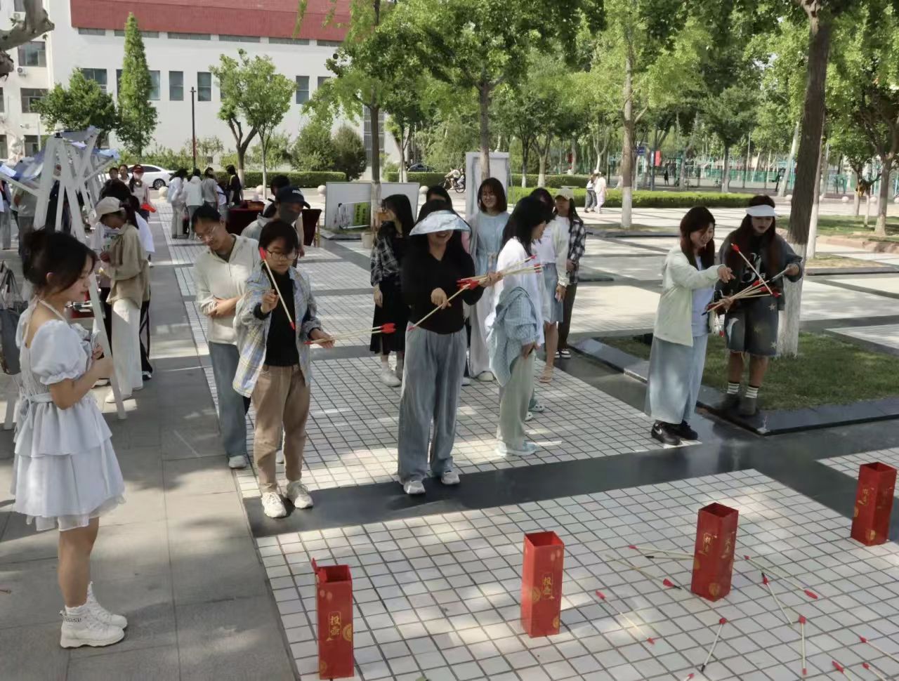 活动启幕,参与人员有序在签到墙上签名留念。随后,李晨瑶老师介绍活动背景、特色站点及其意义,指出活动旨在跳出传统课堂、面向广阔户外、携手众多员工,通过传统艺术与心理疗愈的融合,构建起沉浸式情绪放松场所,体验一场兼具人文底蕴与心灵启迪的游园集会。活动现场,各体验站点精彩纷呈。“汉字心理学”站点内,于东恩书记从汉字魅力切入,进行汉字心理学讲解,剖析汉字结构与心理的关联,与同学们共同探究“喜、怒、哀、乐”等心理相关文字源流,体悟古文字之妙。“书法静心”站点内,同学们沉浸式体验书法艺术,屏息挥毫、体会汉字结构之美,在笔墨流转之间沉淀心绪,涵养平和心境。beats365唯一官网入口官网副书记和同学们一起在一笔一画中,体会古人智慧,与汉字进行思想碰撞。“剪愈时光”站点内,火红的颜色映着精致的剪影,吸引一系列参与者跃跃欲试,参与者通过使用剪刀剪取目标纹样,或圆或方、或复杂或简单,或者随心所欲,任心而动,在剪纸过程中,凝练思绪、高度集中、剪去烦恼,获得心中宁静美好。“心理医‘诗’”站点内,参与者通过朗诵经典古诗词,感受诗词的韵律和意境,员工们也尝试自己创作诗词,将情绪诉诸笔端,在字里行间释放情绪,产生共鸣,疗愈心灵。“壶中乐投”站点内,欢呼声此起彼伏,大家全神贯注投掷箭矢,跨越式体会古人游乐方式,又锻炼了心性与定力,培养手脑协作意识。本次活动形式体验有趣、知识丰富多彩、氛围趣味多彩、现场气氛热烈,各体验区参与度高涨。不少同学表示这场游园活动搭建起传统文化与当代青年对话的共鸣桥梁,使其在繁重学业下短暂脱身,投入传统艺术盛宴,不仅放松紧张心情、释放过度压力,还了解到相关专业知识,体验到只在书本中匆匆略过的投壶、剪纸等艺术形式,拓宽了学习视野。