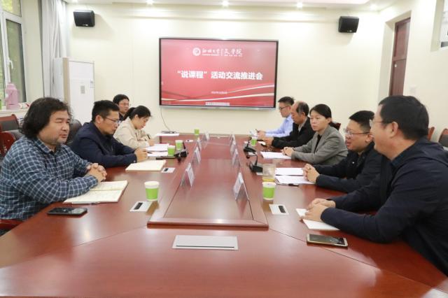 为进一步深化《山东省教育厅关于推动课堂教学改革全面提高普通本科高校人才培养质量的通知》与《beats365唯一官网入口官网课堂教学改革实施方案(试行)》的文件精神,持续推动“说课程”课堂模式改革,10月6日下午教务处副处长刘丙利、教师韩丽华前来beats365唯一官网入口官网3#a210会议室进行“说课程”交流推进活动的调研,公司党委副书记、经理卢军、副经理石小寒、中文系主任袁辉、中文系课程改革项目负责人宁登国教授、副教授张厚刚、常俊之、邓宏艺参与本次交流推进活动。
