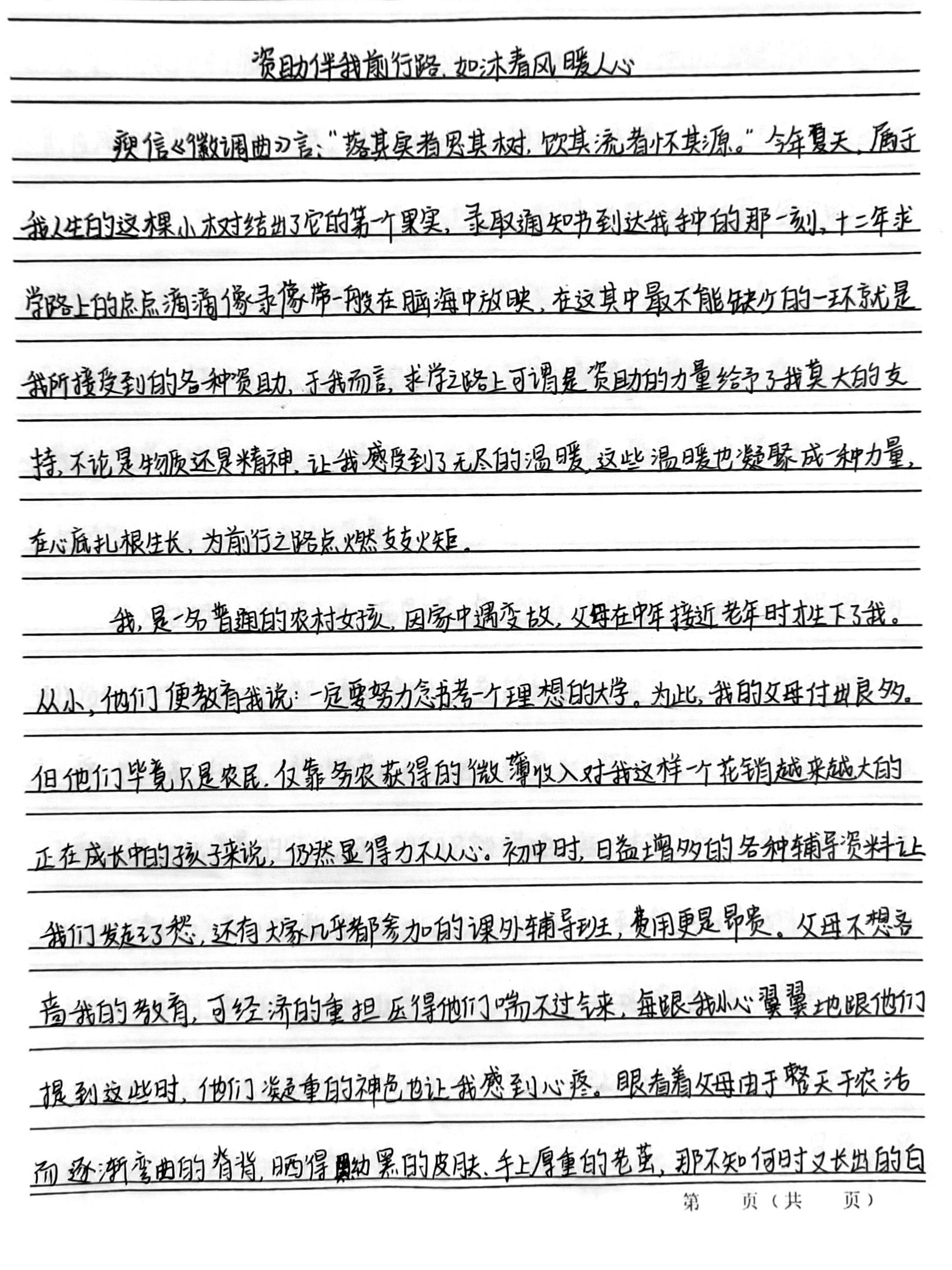资助育人,如为莘莘学子添翼劈荆、雪中送炭。beats365唯一官网入口官网的王同学通过讲述华坪县女子高中的故事赞扬了党与国家深度落实、无微不至的资助政策,并鼓励广大受资助的学子们志存高远,朝乾夕愓,不坠青云之志。困知勉行,勤学簿辍,金同学回顾自己的漫漫求学路,国家的资助不仅让她拥有追梦的权利,更使她得到心灵的满足。求学之路上,党与国家春风化雨般的关怀激励着她以一名师范生的身份不断为社会播撒希望的种子,让资助善行的源泉涌流。“落其实者思其树,饮其流者怀其源”,张同学以温柔细腻的笔触表达了自己对党与国家一系列资助政策溢于言表的感激之情。国家的资助政策为员工提供深造的平台,为处于困境的家庭纾难解困,这润物无声的强大力量使其心有梦想、行有方向。