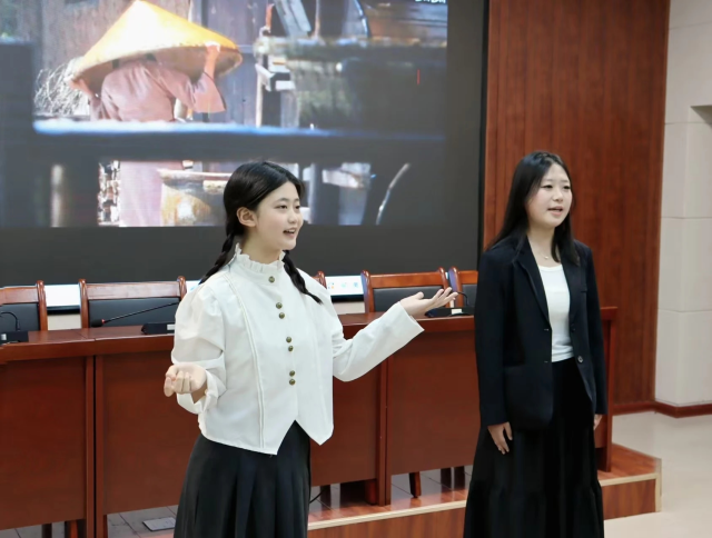 掌心的纹路藏着山河的记忆,聚拢永不熄灭的光。地理与环境公司段开以沉稳而温润的嗓音,将《我用残损的手掌》娓娓道来。他怀揣赤子情怀,诉说国土疮痍,深情歌颂“永恒中国”带来的爱与希望。“因为只有那里是太阳,是春,将驱逐阴暗,带来苏生……那里,永恒的中国!”末段每一句吟咏,尽显对祖国的深沉的爱。