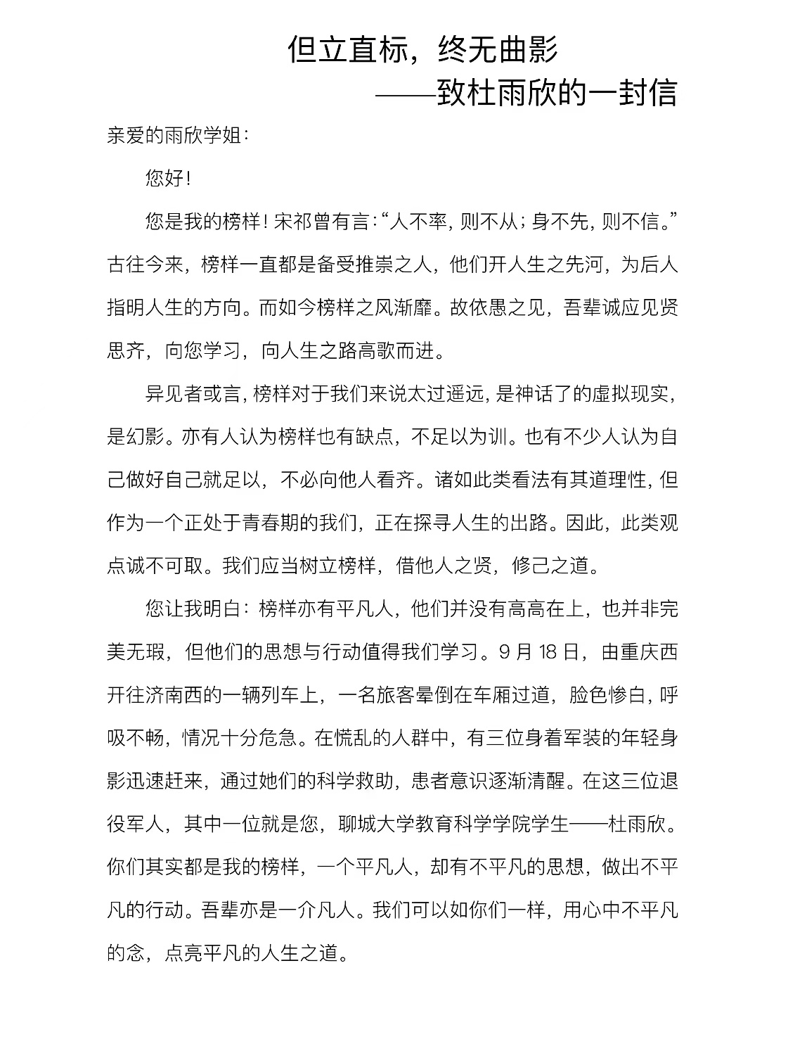 其身端正 行道泰然 公司举办“致杜雨欣一封信”征文活动