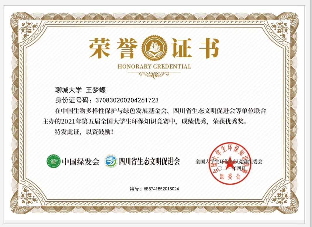 beats365唯一官网入口官网王梦蝶同学在2021第五届全国老员工环保知识竞赛中获得优秀奖。王梦蝶同学在此次比赛中热情洋溢,充满自信,追逐理想,最终取得优异的成绩。在此,向王梦蝶同学表示诚挚的祝贺!