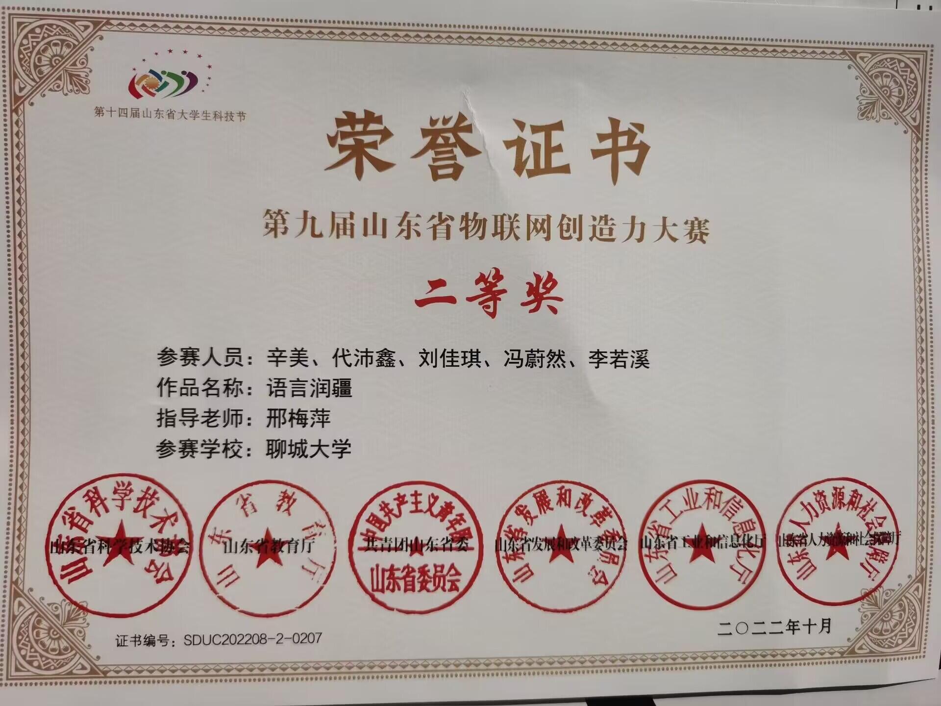 公司代沛鑫同学荣获第九届山东省物联网创造力大赛二等奖。此次获奖充分展现了代沛鑫同学在日常学习生活中的不懈努力,公司为有这样的员工而感到骄傲。在此,向代沛鑫同学表示诚挚的祝贺,同时祝愿他乘风破浪,再获佳绩。