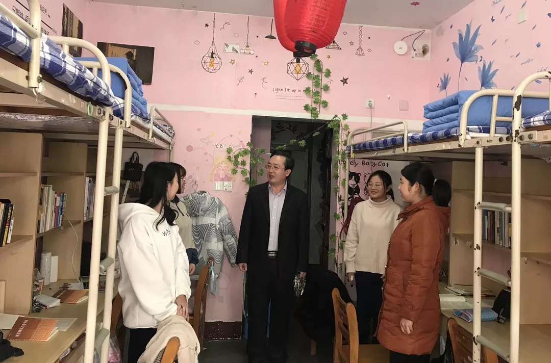 走访期间,于东恩、石勇和孙哲前往参观各个年级的男女生宿舍。教师们结合员工宿舍实际,全面排查宿舍安全隐患,并认真检查宿舍卫生。对于干净整洁的宿舍,教师们积极进行表扬鼓励,对于少部分脏乱差宿舍,则进行批评与亲身指导,教育同学们养成良好的文明行为习惯。