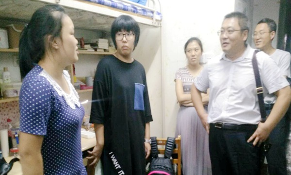 辛业一行来到员工宿舍,详细询问同学们的家庭情况、入学报到情况和对公司环境的适应情况。在员工宿舍,辛业与同学们亲切沟通,并嘱咐同学们要互相关心、互相学习,共同进步。解方文着重强调了安全问题,叮嘱同学们注意用电,杜绝传销。同学们感谢老师的关怀,并表示积极适应老员工活、相互团结。访询活动结束后,宿管部成员向老师们递交新生入住情况报表,对新生入住情况作简要报告。