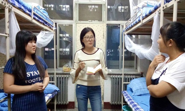 20:00将近,员工代表们来到各自负责的宿舍,表明来意,相互介绍,和蔼的态度与风趣的言辞使现场气氛慢慢活跃起来。紧接着,员工代表回答新生们的问题,并详细讲解了关于申请贫困补助的相关问题,在对各位新生的家庭条件与学习状况有了大致了解之后,员工代表鼓励新生们学会自强自立,公司会为各位争创优良的学习环境,削减学子们求学道路上的障碍。最后,针对宿舍安全问题,员工代表们叮嘱新生团结同学,更要注意用电与个人财产安全,杜绝传销尤为重要。