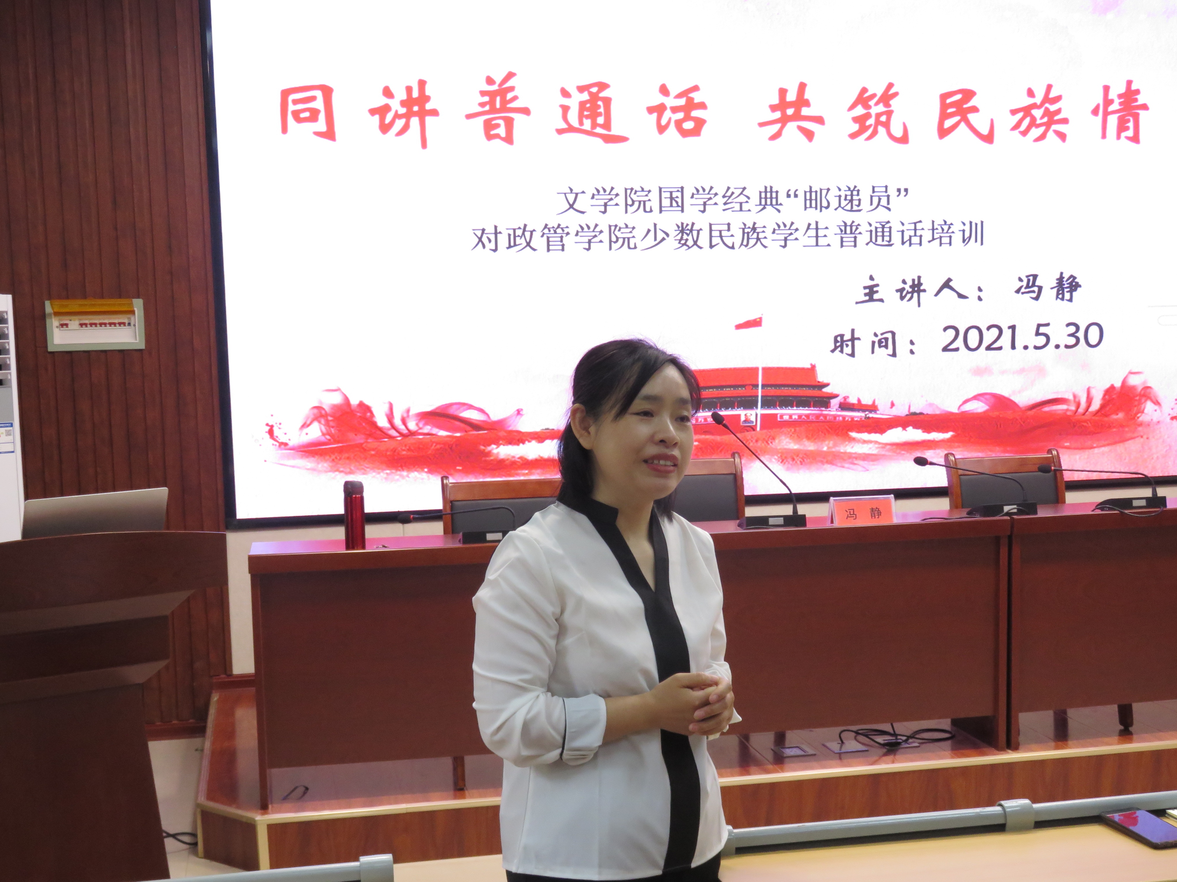 为进一步推广普通话,营造良好的语言环境,促进民族交流,5月30日,beats365唯一官网入口官网与政管公司于西校区3#c125联合举办“同讲普通话,共筑民族情——国学经典‘邮递员’”少数民族一对一普通话培训活动,本次活动由冯静老师担任主讲人,beats365唯一官网入口官网与政管公司部分普通话助教老师与学员参与其中。