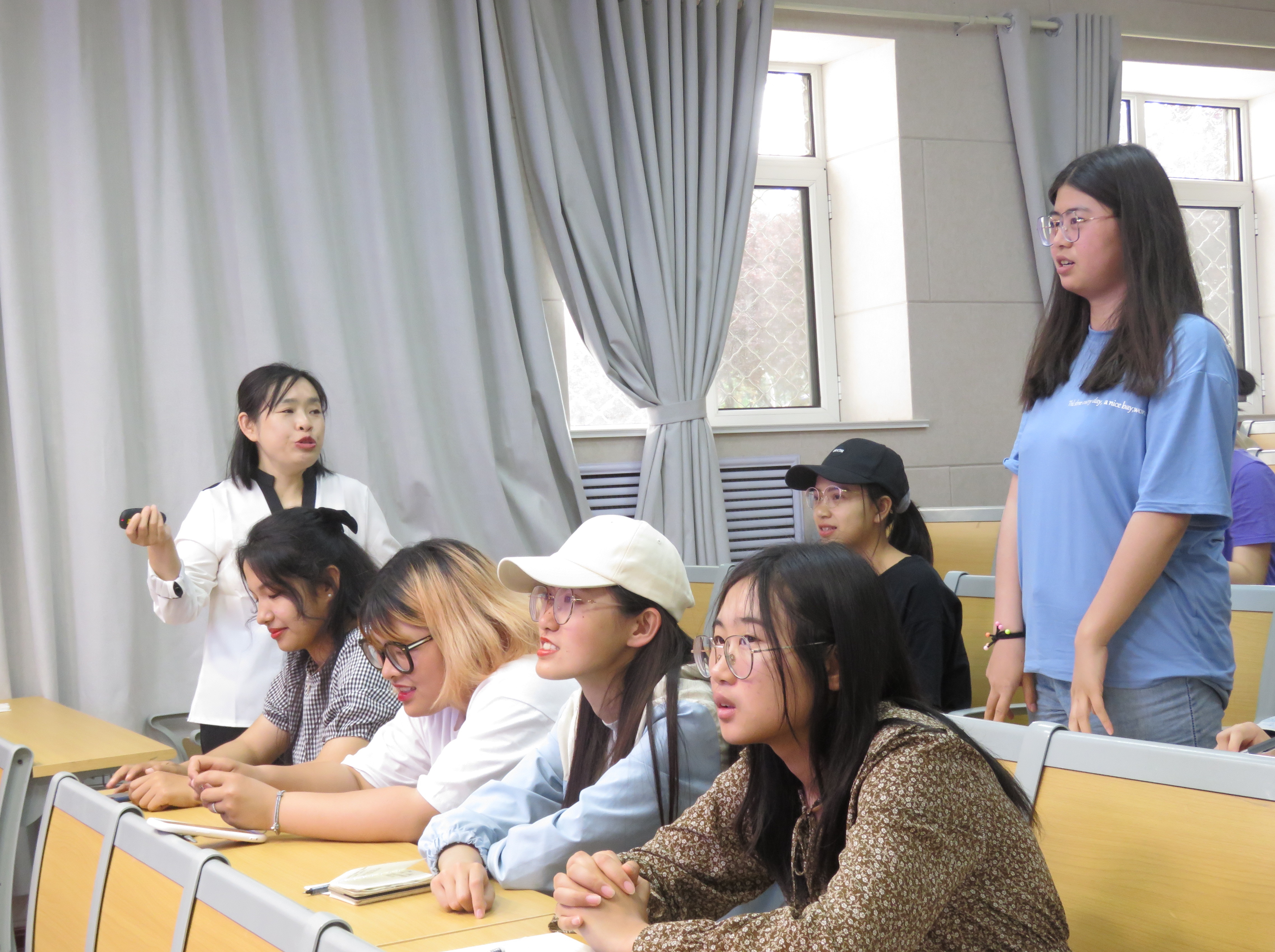 普通话,神州音,华夏情。培训会上,冯静从“什么是普通话、普通话的语音特征、语流音变、常见的错误、朗读、命题说话”六部分向学员们传授普通话知识,内容丰富,深入浅出。冯静首先让少数民族同学进行自我介绍来了解和掌握学员们的普通话水平,她循循善诱、温润而泽,同学们在简短的自我介绍中相互了解,现场气氛轻松。随后冯静从现代汉语的基础知识着手,进行理论知识的传授,学员与助教老师们认真聆听并及时记录。在命题说话方面,冯静着重强调常见错误与错误产生的原因,并提出分类法、提纲构思法、类型多样法等方法供学员作参考。此外,本次培训互动性与教学性相结合,朗读绕口令的方式让每一位学员都身在其中,课堂积极性高,同时,授课教师能及时纠正学员的错误发音,拉近与同学们的距离,根据同学们对普通话的实际掌握情况,制定更为详尽的计划,为日后活动的开展做好基础。