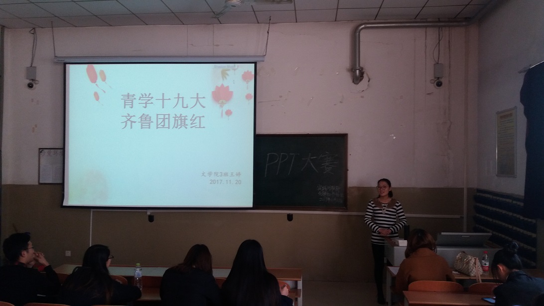 为丰富老员工课余生活,提高老员工对办公软件的运用能力,11月26日,beats365唯一官网入口官网先锋秘书协会和实践外联部在3#A316共同举办以“青学十九大,齐鲁团旗红”为主题的PPT大赛。beats365唯一官网入口官网孟春莹、潘晓寒、倪彤等优秀员工担任此次比赛评委。beats365唯一官网入口官网部分员工参加此次比赛。