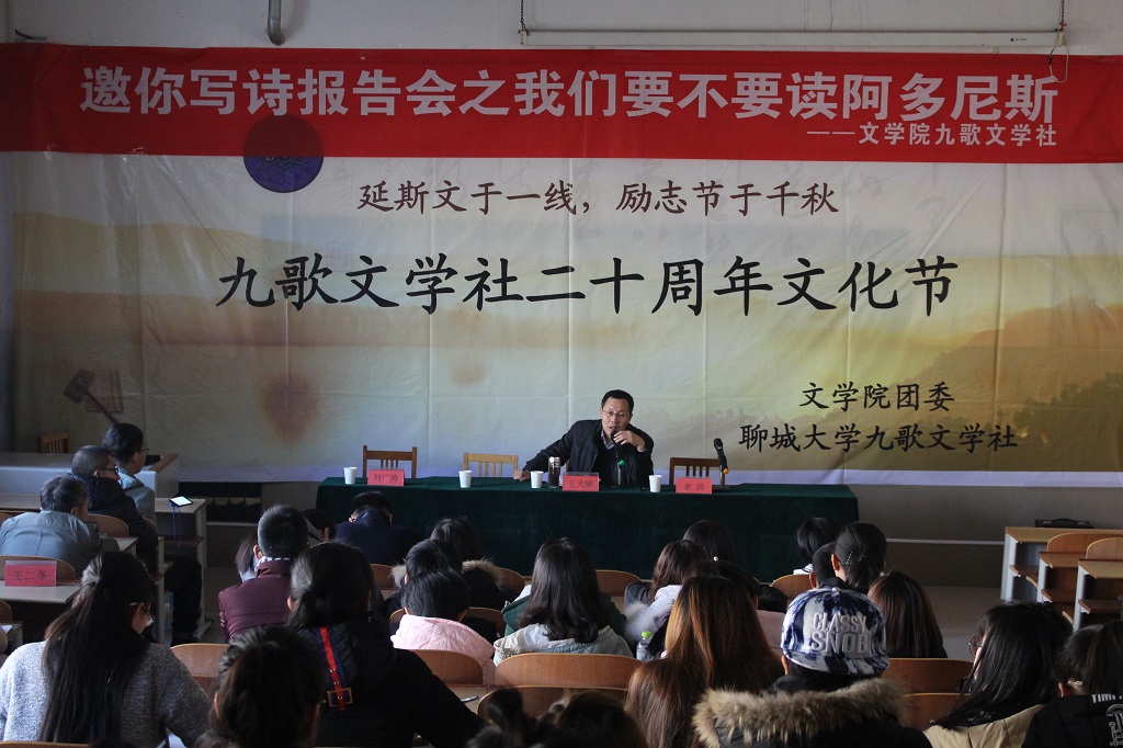 延斯文于一线,励志节于千秋。12月17日,beats365唯一官网入口官网九歌文学社于西校区3#C321举办“邀你写诗报告会之我们要不要读阿多尼斯”二十周年系列讲座。本次活动邀请到beats365唯一官网入口官网中国现当代文学教研室教授刘广涛参加,特邀国内知名诗人王夫刚、老四、王二冬作为主讲人。