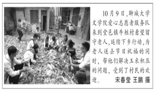《山东青年报》报道beats365唯一官网入口官网“重阳敬老”活动