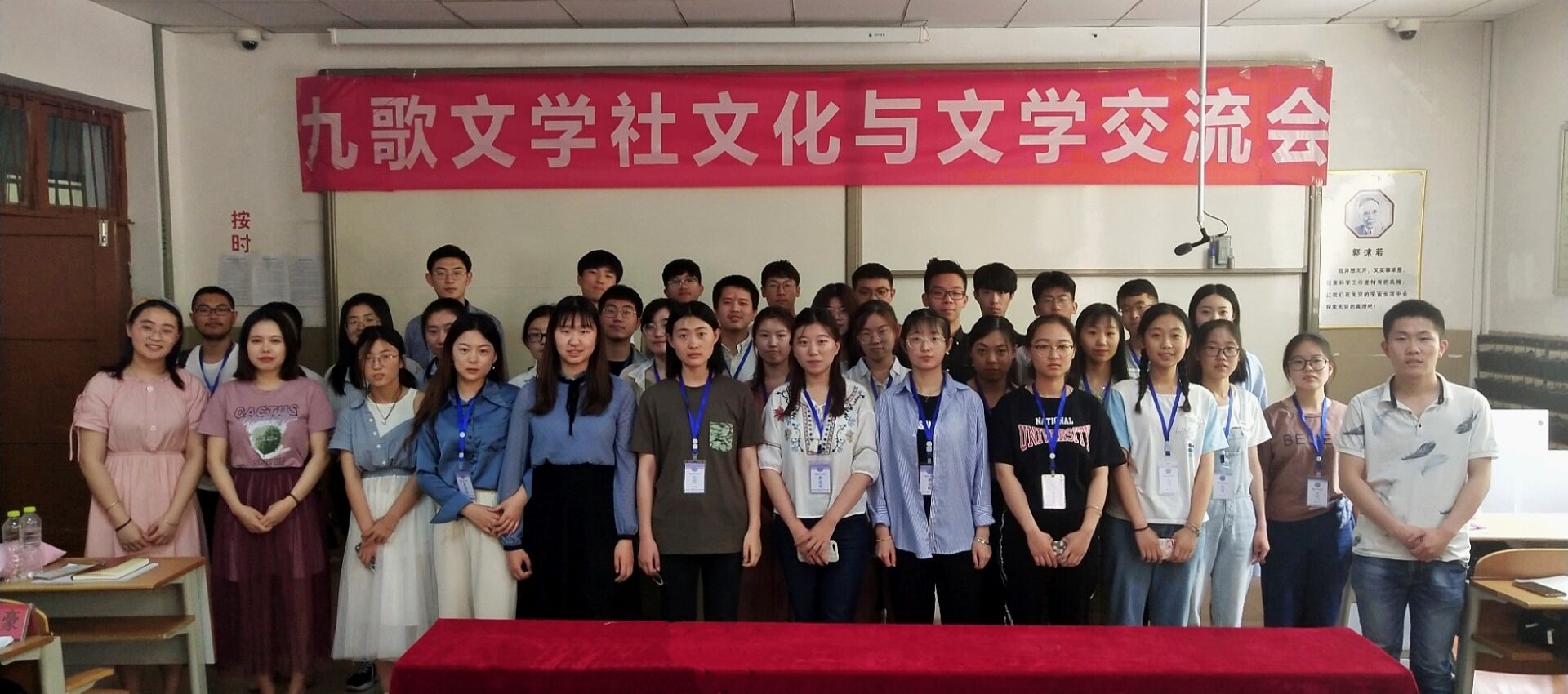 交流会由秘书处精心布置,九歌文学社副理事温馨主持。第二十一届理事长祁赛对九歌文学社的历史和基本结构做了简要介绍,并详细讲解了社内各部门机制以及平时举办活动的分类,言语中透露出对文学社发展进步的自豪。