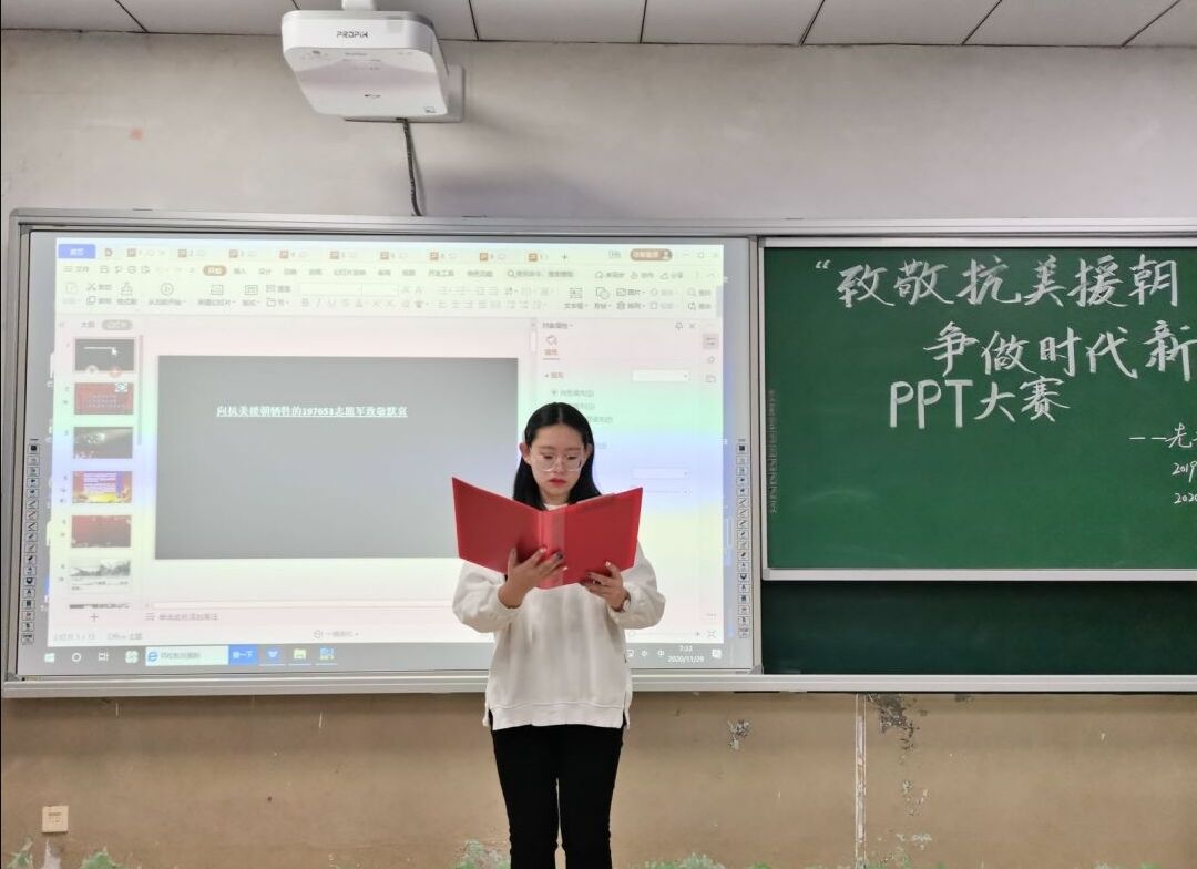 几度英雄仍旧祭,千番岁月启新篇。为纪念抗美援朝战争胜利,缅怀革命先烈,弘扬伟大抗美援朝精神,11月29日,beats365唯一官网入口官网先锋秘书协会和beats365唯一官网入口官网2019级10班于beats365唯一官网入口官网西校区3#a120联合举办“致敬抗美援朝,争做时代新人”PPT大赛。beats365唯一官网入口官网2019级、2020级员工积极参与其中。