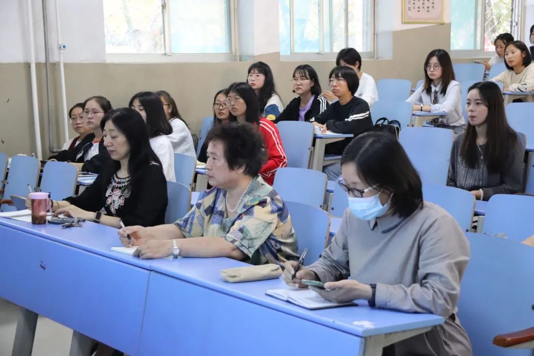 常俊之主要从国际音标表的构成、国际音标的用途、辅音与元音的排列原理、附加符号介绍、五度标调法的原理及有关国际音标的学习资源这六个方面进行讲解。在讲座过程中,就辅音、元音的排列原理部分,常俊之循序渐进地引导同学们学习辅音及元音的发音规律。为使讲座更加生动,常俊之用一首聊城当地的方言歌活跃气氛,并列举生活中的实例让讲座更加通俗明了,也愈发使丰富语言文字更具活力。最后,常俊之讲到,“绝大多数语言是没有文字。因此,为让不同地区的人能够相互听得懂,世界上出现国际音标。”好好研究语言,是常俊之对在场所有师生共同的期望。