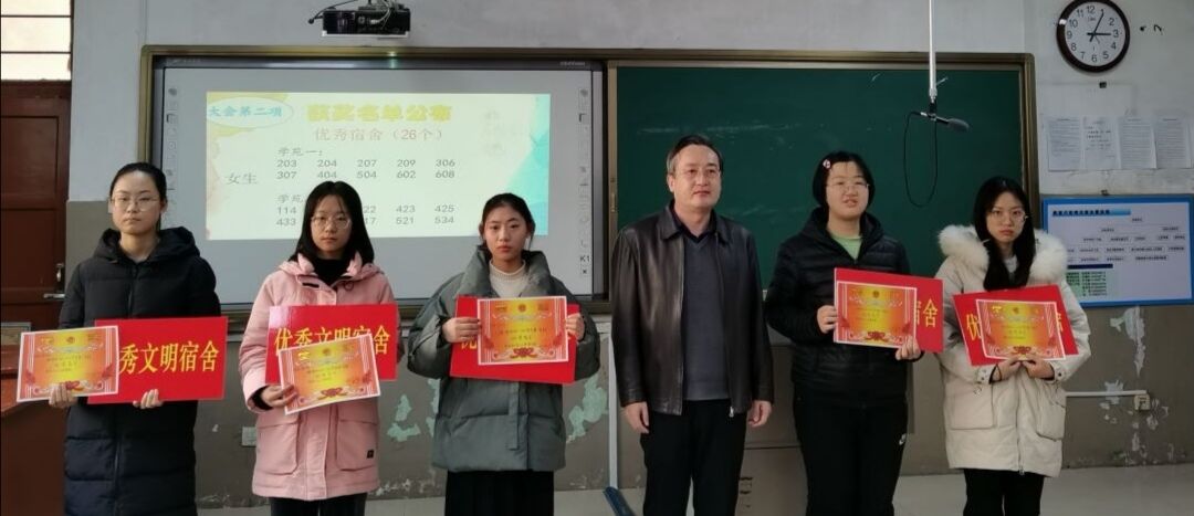 本次表彰大会围绕宿舍和教室卫生要求展开,主持人陈荟如强调,文明和谐的宿舍和干净整洁的教室环境可以提升员工的思想文化修养。大会第一项,陈荟如公布优秀文明宿舍和优秀班级获奖名单。于东恩、胡明洋、贾瑞清对获奖宿舍和班级颁发奖状与生活用品。大会第二项,主持人公布优秀个人名单,优秀先进个人代表王延宁发言,他向大家分享宿舍的日常生活,表示宿舍是像家一样温暖的存在;先进个人代表刘佳琪提出,舍友之间应该共同努力,互相温暖,努力营造良好的宿舍氛围。大会第三项,于东恩发表讲话,强调宿舍环境的重要性,良好的宿舍环境能够促进同学们的学习发展,希望宿舍内部互相动员,统一思想,积极考研,争取全员参与到考研中来,从大一就开始树立明确的目标和方向,坚定考研决心,争取出现考研大满贯宿舍;舍长应协调好宿舍内部关系,促进宿舍人际关系的和谐发展五差宿舍应向十佳宿舍学习,改进宿舍现存的问题,争做优秀文明宿舍。