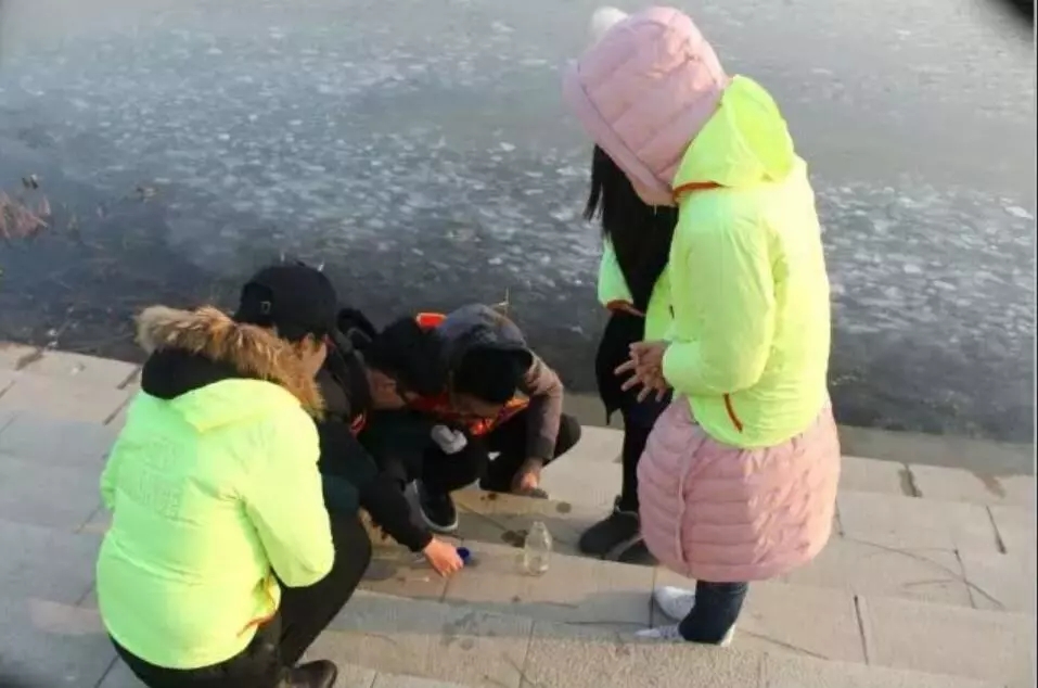 同学们用心调查徒骇河附近环境情况,结果却使人大失所望。放眼望去,河岸两侧布满垃圾,河面上零零散散地漂浮着的塑料袋、矿泉水瓶等无一不刺痛同学们的心。根据事先安排好的工作准备,同学们从打扫河岸上散布的垃圾着手,把岸边的垃圾捡拾干净,齐心协力用自己准备的工具以及一些长树枝打捞河中的垃圾。由于河面上结了薄薄的一层冰,打捞工作也变得艰难起来。“君不见长松卧壑因风霜,时来屹立扶是堂”。数九严冬,寒风砭骨,困难重重,但同学们依旧用热情的心和巧妙的方法克服了这些困难。同学们在寒风中付出的辛苦没有付之东流,徒骇河的环境问题在同学们的努力下得到了极大的改善。同学们纷纷表示当看到徒骇河变干净之后,一股浓浓的自豪感和责任感开始在我们的心头间蔓延,身为中华儿女,我们要为保护中华大地“生命之源”付出努力、投身实践。