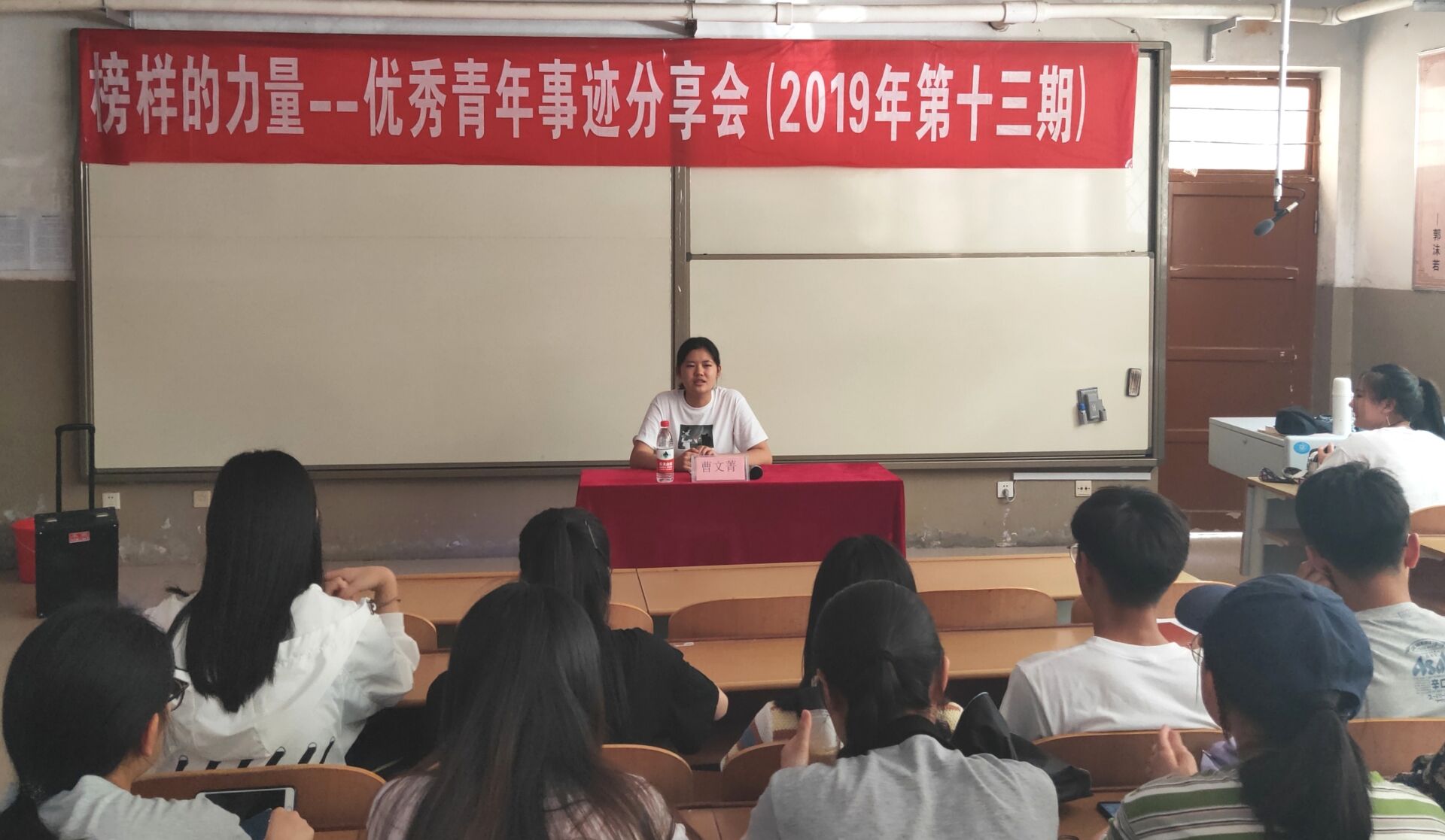 为激励老员工积极进取、努力拼搏,6月2日,由beats365唯一官网入口官网校员工会主办,beats365唯一官网入口官网承办的2019年第十三期“榜样的力量——优秀青年事迹分享会”于3#A116举办,诚邀beats365唯一官网入口官网2017级校级优秀员工、校级优秀员工干部、优秀团干部标兵曹文菁担任主讲人。beats365唯一官网入口官网2018级部分同学积极参与。