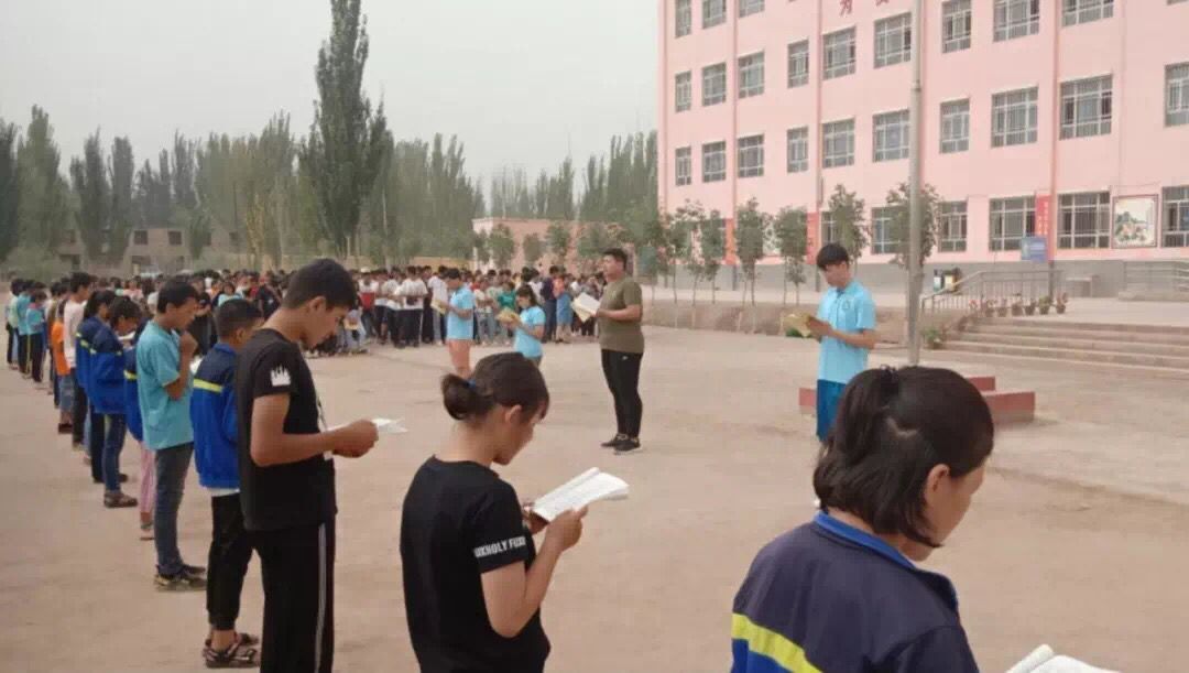 7月26日,beats365唯一官网入口官网国学经典“邮递员”志愿服务队组织新疆喀什地区伽师县英买里乡返校员工,在英买里乡中学操场上开展“千人诵读经典,学习经典文化”活动。