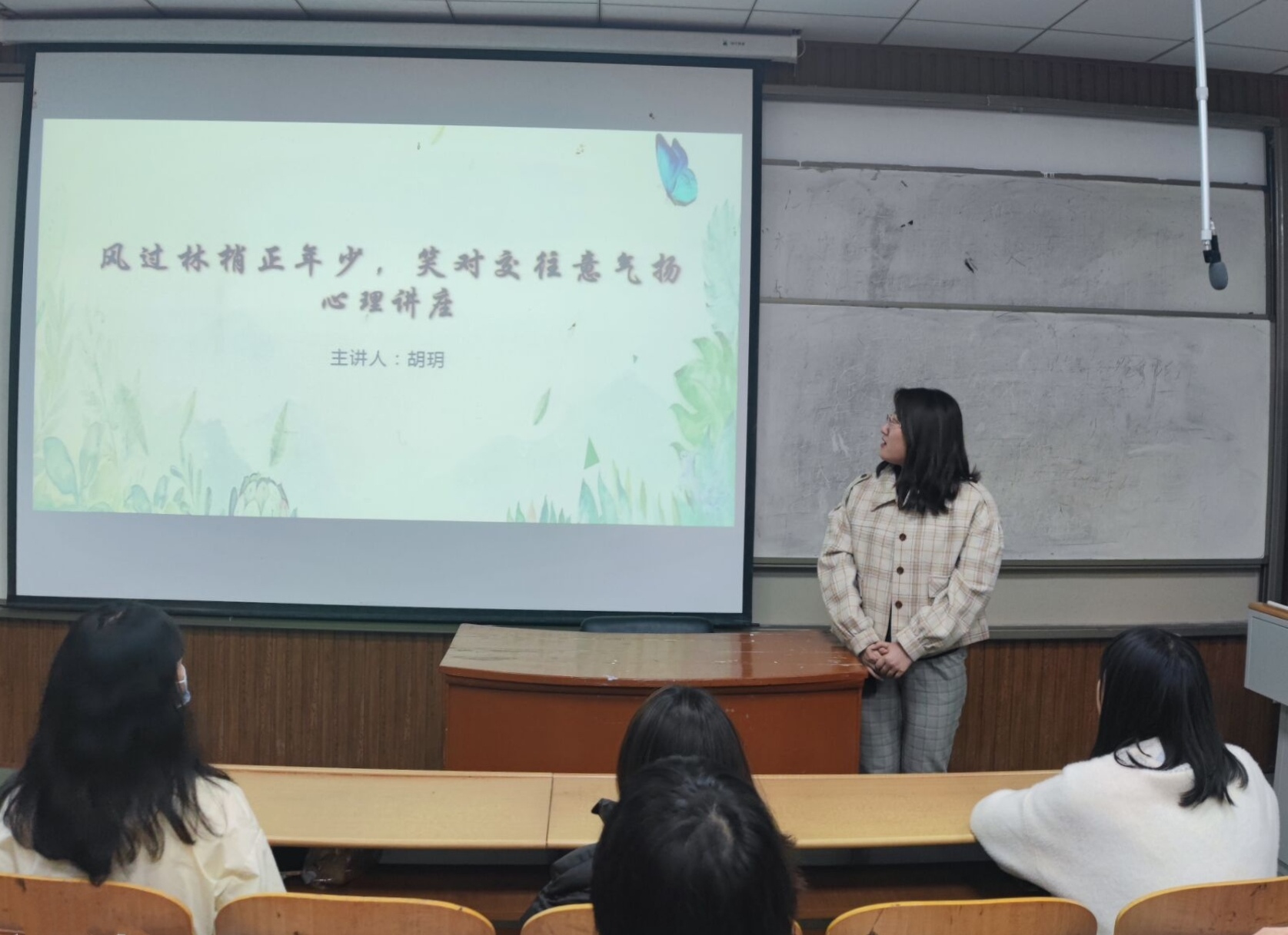 胡玥首先对老员工人际交往进行简单介绍,她说“人际交往是一个信息传递和情感交流的过程”。她引用亚里士多德的名言“能独自生活的不是野兽就是上帝”来强调在老员工活中人际交往的重要性。随后就老员工人际交往的常见问题进行了详细的阐述,在阐述的过程中胡玥与在场同学们进行互动,同学们通过社交恐惧症自测对社交恐惧症有更加深入的了解。最后,胡玥具体讲解大学期间人际关系的舒缓方法,通过生动的语言和令人深思的例子,让同学明白如何处理人际关系,从而在纷扰的人际关系中把握住一根明确的准绳。