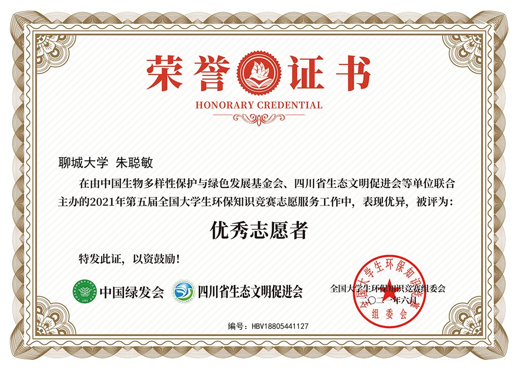 在第五届全国老员工环保知识竞赛中表现优异,荣获优秀志愿者称号