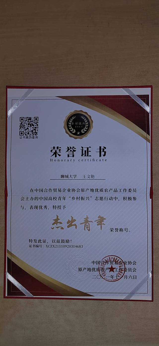 公司王文艳同学中国高校青年“乡村振兴”志愿活动中荣获杰出青年称号。此次获奖充分展现了王文艳同学在日常学习生活中的不懈努力,公司为有这样的员工而感到骄傲。在此,向王文艳同学表示诚挚的祝贺,同时祝愿她乘风破浪,再获佳绩。
