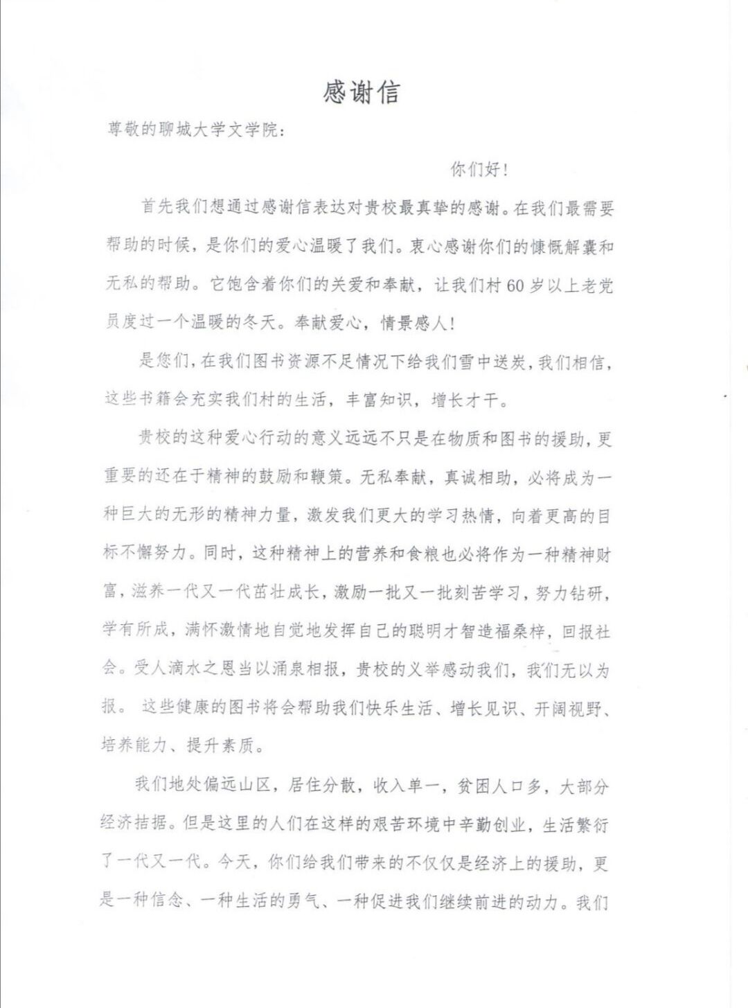 云南省兰坪县代表来信中更是字字恳切,在信中感谢beats365唯一官网入口官网赠予的爱心图书及爱心棉衣,信中表示爱心棉衣帮助老人度过阴冷冬日,爱心图书帮助充实村民生活,丰富知识,增长才干,在这爱心行动的背后,将给于新一代的孩子精神鼓励,滋养一代又一代孩子健康成长!
