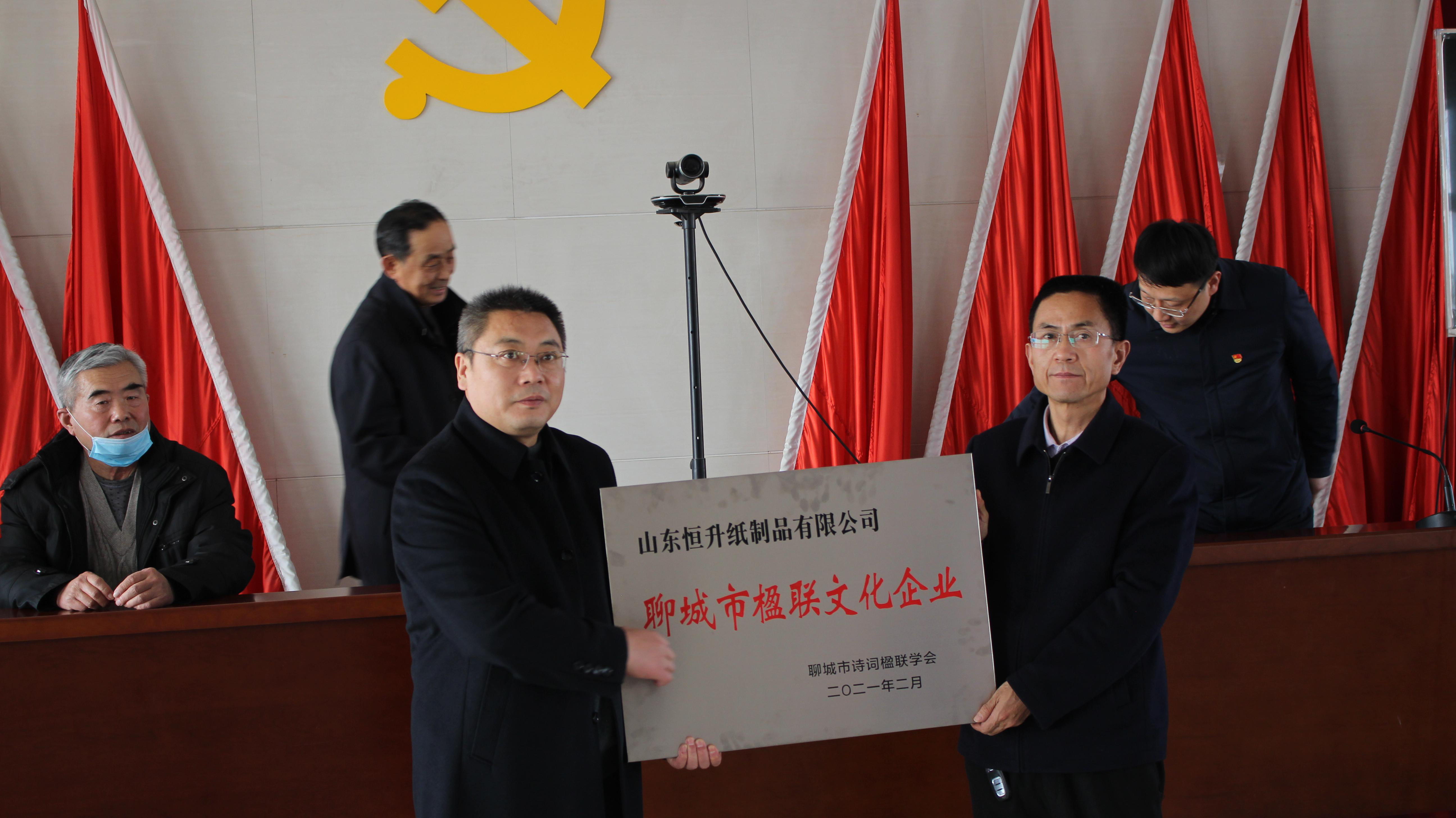 2月5日,冠县北馆陶镇举行市级楹联文化乡镇及企业授牌仪式,公司党总支书记辛业,办公室主任冯庆奎,教师宁登国教授、郝学华副教授参加了这次活动。经聊城市诗词楹联学会研究批复,冠县北馆陶镇获批“聊城市楹联文化镇”、山东恒升纸制品有限公司获批“聊城市楹联文化企业”。