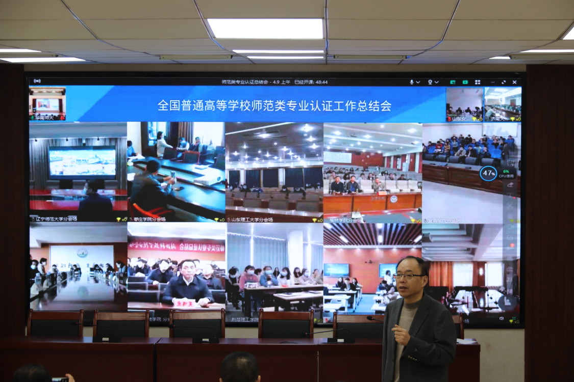 教育部教师工作司副司长宋磊就教师工作建设问题作出指导,总结归纳教师教育工作中存在的主要问题和注意事项。教育部高等公司产品评估中心主任范唯就“做好高等教育评估认证监测工作,支撑高质量教育体系建设”的三个要求进行说明,明确指出应高质量推进师范类专业认证工作,引领师范教育专业建设与教师教育振兴发展。