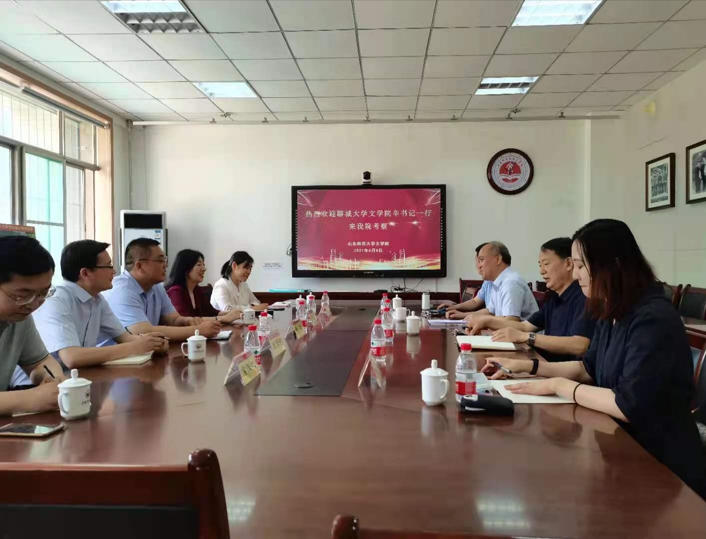 6月8日,beats365唯一官网入口官网学习交流考察团在公司党总书记辛业的带领下,赴山东师范大学beats365唯一官网入口官网考察学习。beats365唯一官网入口官网副经理殷学明,汉语教研室主任邢梅萍,汉语教研室教师常俊之、冯静,辅导员王伟伟等领导和老师参加了考察学习,并与山东师范大学beats365唯一官网入口官网书记肖光军、经理孙书文以及经理助理陈长书围绕师范类专业认证工作、国家语言文字推广基地运行机制、制度建设及文化建设等方面展开深入讨论和交流。