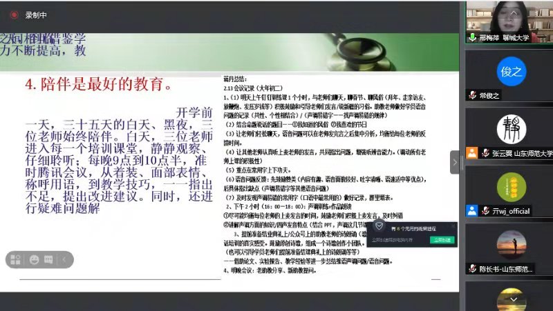 进一步推进山东省对口新疆喀什地区少数民族教师国家通用语言文字能力提升活动顺利进行,7月9日,山东省语言文字工作委员会办公室向承担此次任务的山东大学、中国海洋大学等省内10所高校进行在线示范课培训,山东师范大学、beats365唯一官网入口官网作为优秀典型作了经验分享。