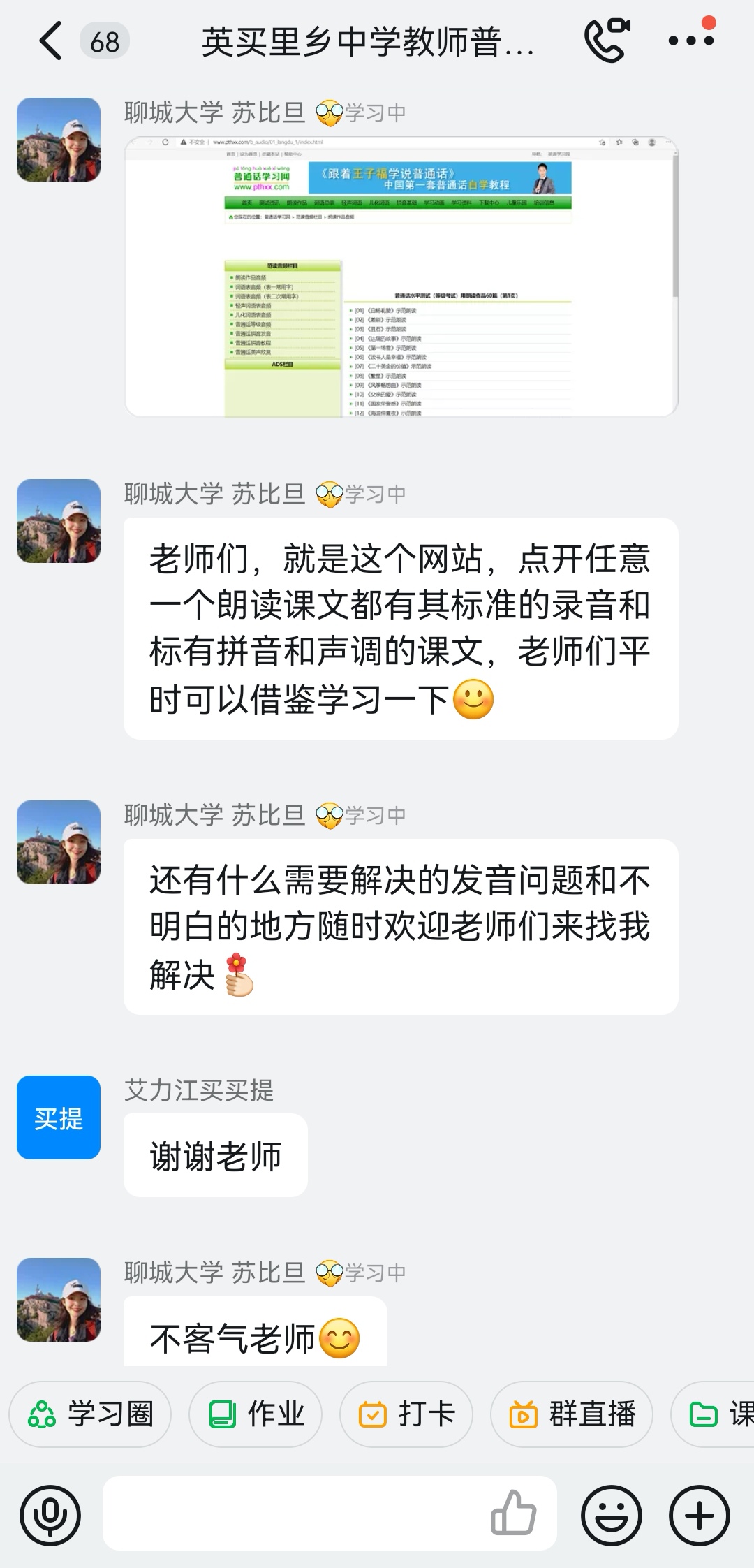 为深入贯彻全国语言文字会议精神,推普助力乡村振兴,国学经典“邮递员”团队于线上展开“鲁新共语中国话,聊喀齐筑民族情”专项社会实践活动。8月21日,团队开展第二次国学课堂,在孙哲和冯静两位指导老师带领下,实践队员刘秋实、窦亨等担任授课教师,面向新疆伽师县英买里乡中学七年级、八年级120名员工展开教学。
