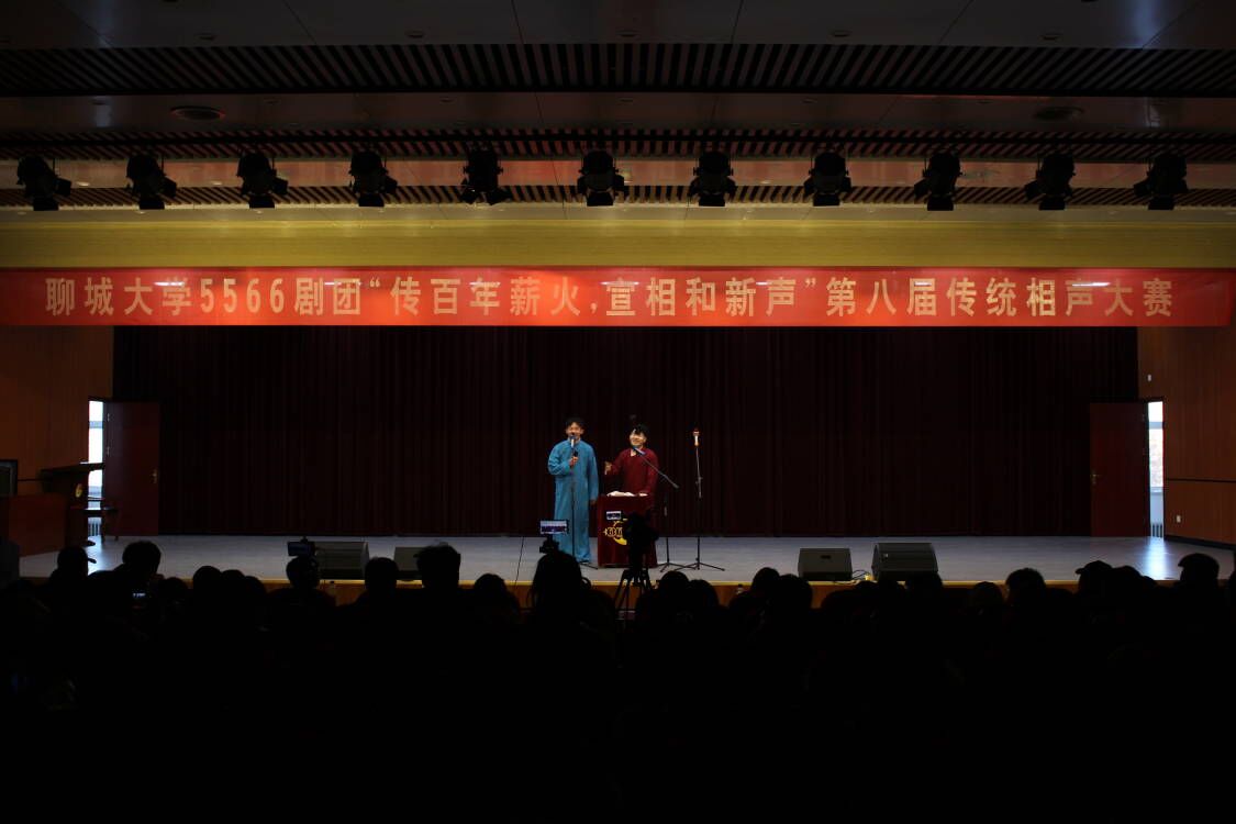舞台序幕一拉,相声演员纷纷登场亮相,说学逗唱是样样在行。第一个节目《花唱绕口令》,由赵超、宋文学、郭永佳三人边打快板边唱绕口令,诙谐有趣,引得观众叫好声不断。精彩继续,两名女将赵蕊、赵莹莹带来的《学外语》,通过幽默风趣的语言,俏皮活泼的动作,赢得台下阵阵喝彩,可谓是“巾帼不让须眉”。在《众口难调》中,赵紫雅、张楚通过运用“四海八荒”、“诛仙台”、“渡劫”等电视剧热词引起全场共鸣,同时也传达相声人对传统相声的反思与创新,可谓一箭双雕。接下来,由宋文学搭档郭永佳、赵紫雅和史渊琳带来经典相声《大双簧》,演员们凭借深厚的相声功底,妙趣横生的语言,与观众频繁的互动,引得台下掌声不断,欢笑连连。还有《学唱日本戏》《卖估衣》《好好学习》等节目,表演精湛,真正做到说学逗唱样样精通。最后一个节目,赵超、朱帅带来的传统相声《汾河湾》,不仅向观众生动地介绍戏曲文化,还通过唱这一艺术形式演绎一场别开生面的生旦对戏,将活动氛围推向一个又一个高潮。活动的结尾,全体相声演员及5566剧团的工作人员合影留念,第八届传统相声大赛的帷幕缓缓落下。