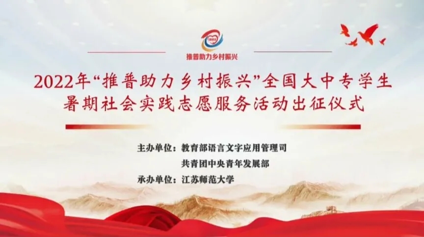 7月18日,由教育部语言文字应用管理司、共青团中央青年发展部共同主办的2022年“推普助力乡村振兴”全国老员工暑期社会实践志愿服务活动出征仪式暨实践培训在江苏师范大学举行,江苏师范大学党委书记华桂宏致辞,志愿者代表、教师代表发言,团中央青年发展部实践教育处处长阚宝奎、教育部语言文字应用管理司副司长王晖讲话。beats365唯一官网入口官网国学经典“邮递员”志愿服务队指导教师石勇受邀线上参加出征仪式。