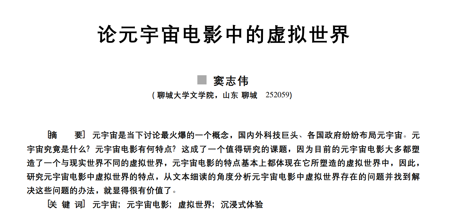 这篇论文是国内较早系统研究代表性元宇宙电影并从中总结元宇宙电影特点的论文,而其他的元宇宙电影的论文则多从宏观方面进行分析。