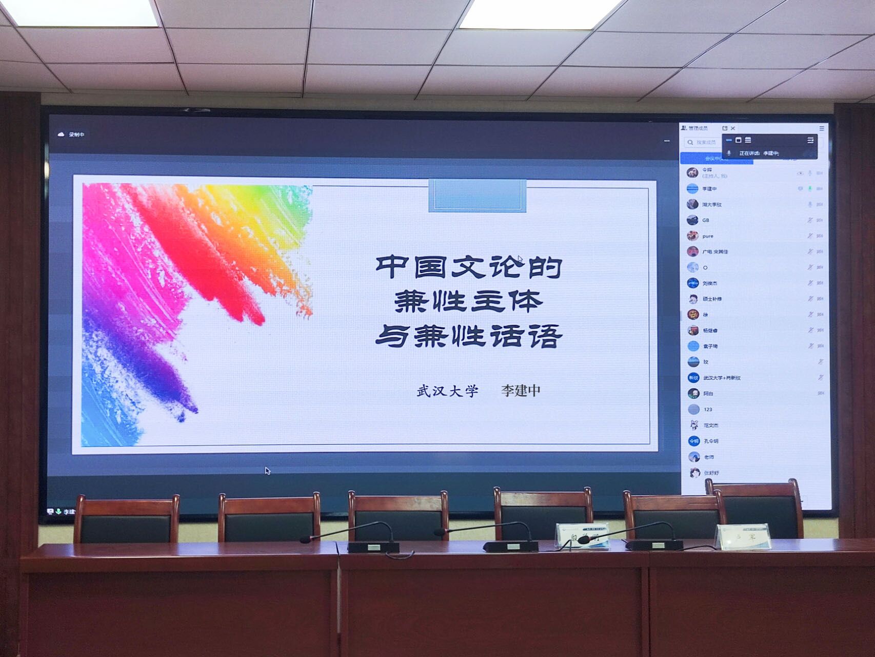 为打造浓厚的学术文化氛围,探究中国文学及其观念的特质,10月16日,beats365唯一官网入口官网特邀武汉大学博士生导师、文艺学学科带头人李建中于西校区3#C125举办以“中国文论的兼性主体与兼性话语”为题的学术讲座。本次讲座由公司党委副书记、经理卢军主持,beats365唯一官网入口官网部分教师、研究生及本科生积极参与其中,本次活动通过线上线下相结合的方式进行。