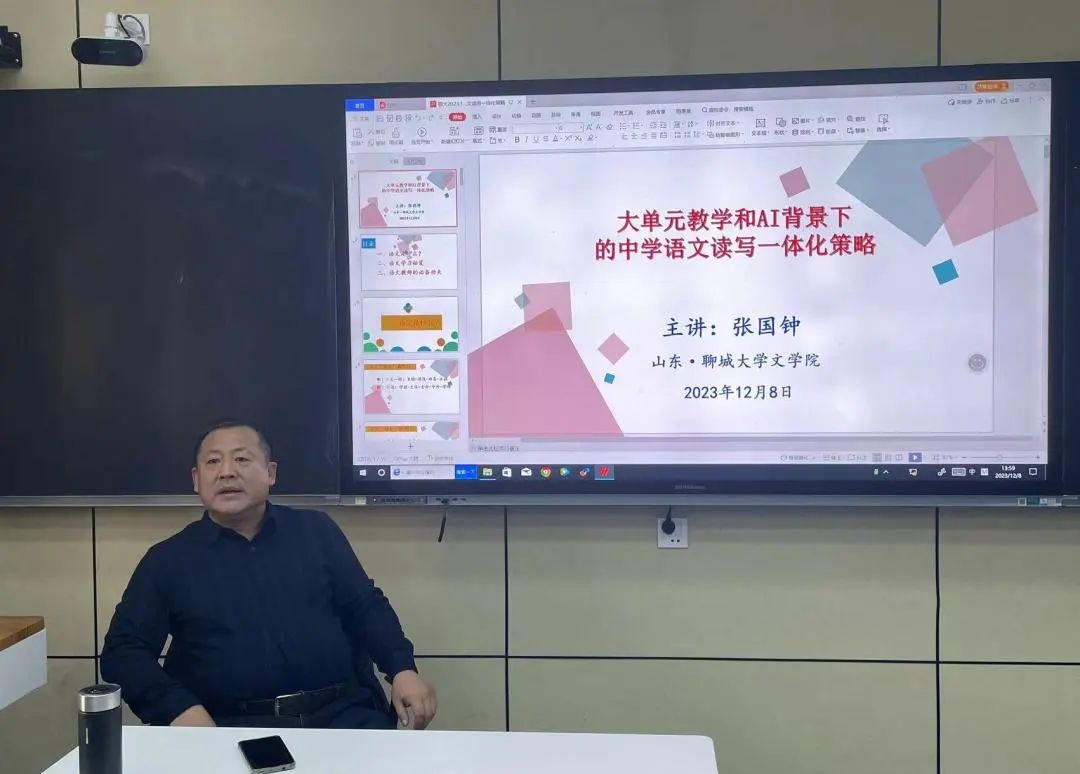 公司于12月8日特邀语文教育专家张国钟老师做客“教育硕士‘五项全能’名师工作坊”第15期,为2022级学科教学(语文)专业研究生做“大单元教学和AI背景下的中学语文读写一体化策略”的主题讲座。