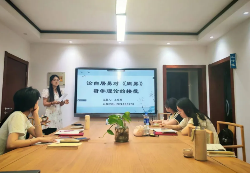王雪颖以“论白居易对《周易》哲学理论的接受”为题进行汇报。她从白居易受《周易》影响的渊源入手,进一步分析了《周易》对白居易人格的滋养以及对白居易作品的陶染,有理有据,结构清晰。静双认为她逻辑清晰,观点明确,但要注意文学作品的选取要充分体现白居易对《周易》的接受。