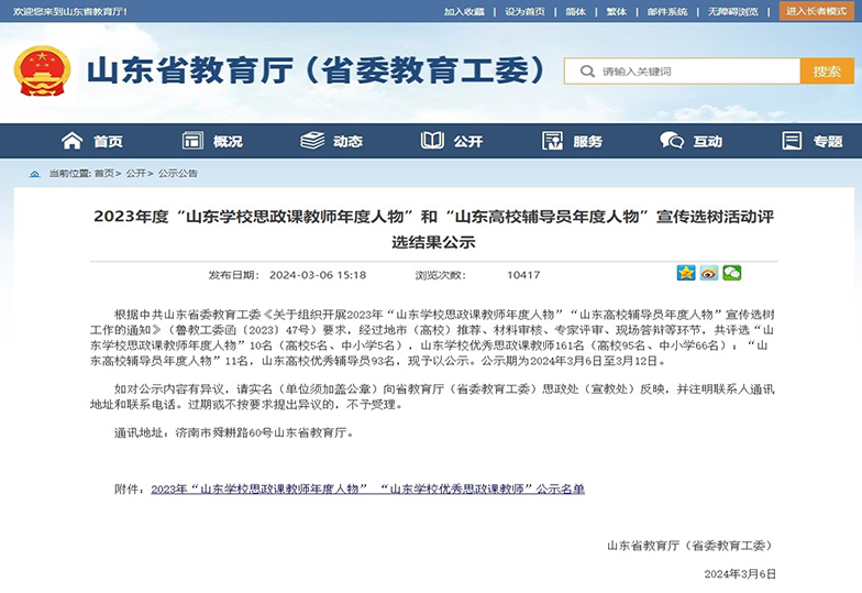beats365唯一官网入口官网团委书记石勇获2023年“山东高校辅导员年度人物”荣誉称号