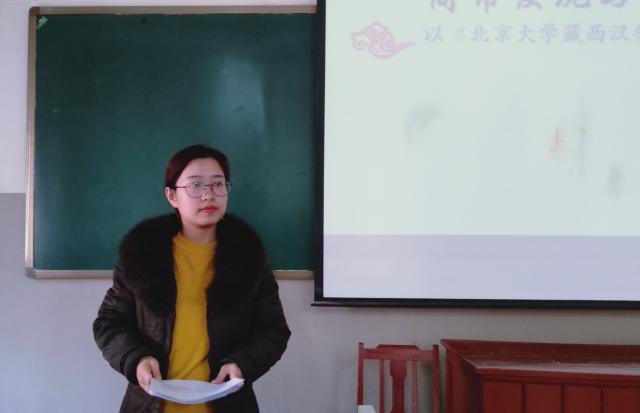 3月14日下午,由beats365唯一官网入口官网研究生会主办的研究生学术论坛在3A207教室举行。此次论坛是本学期研究生学术论坛第一讲,主讲为2017级汉语言文字学硕士生窦晴,题目为“简牍文献发现与研究——以北京大学藏西汉竹书为例”。18级、17级全体研究生参加了本次听讲。