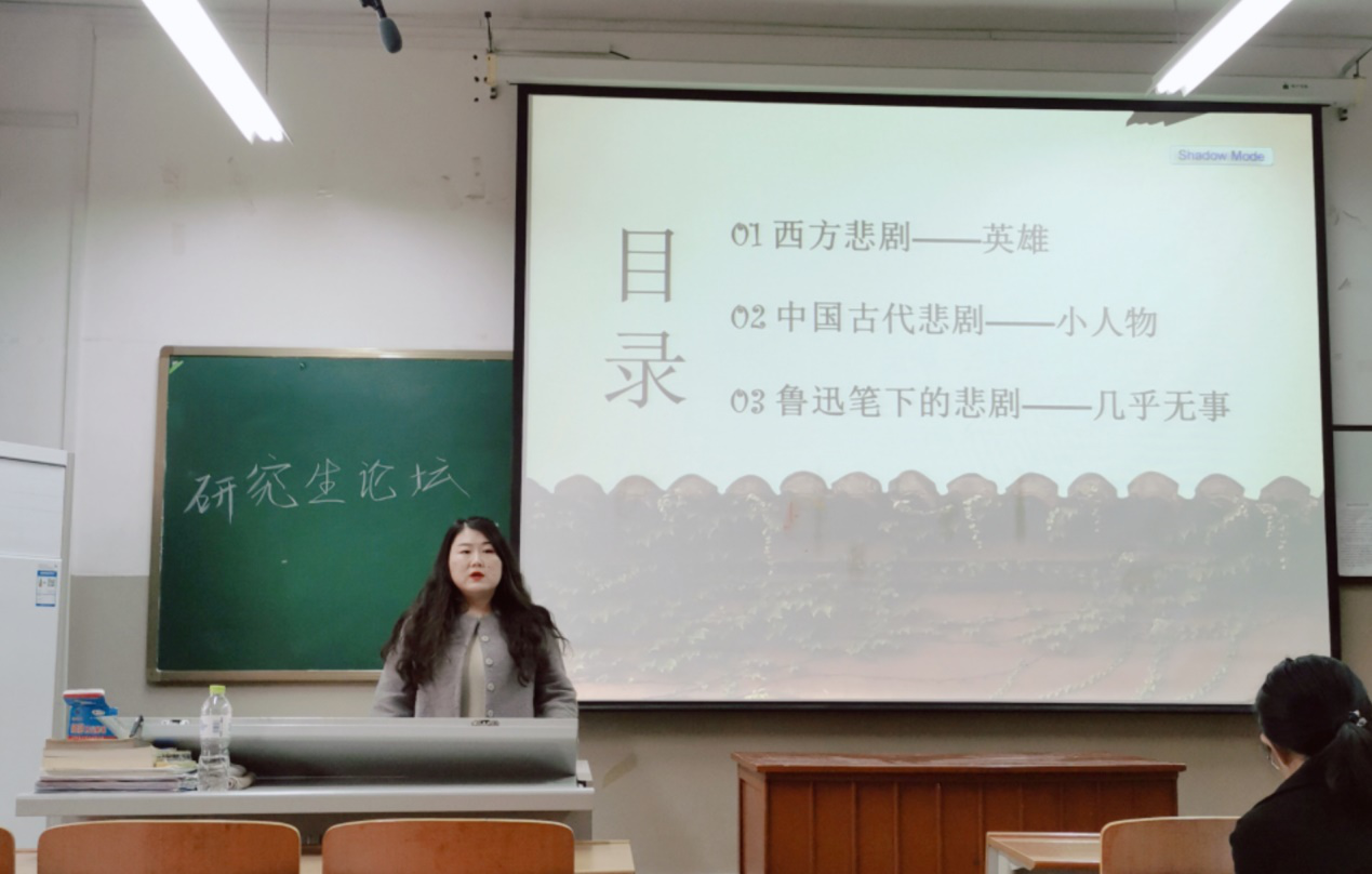 11月7日下午2:30分,beats365唯一官网入口官网第五期研究生学术论坛在3A207教室举行。此次论坛的主讲人是2017级中国现当代文学专业研究生李帆,题目为《谈鲁迅<幸福的家庭>中的悲剧性》。18级、19级全体研究生参加了本次论坛。