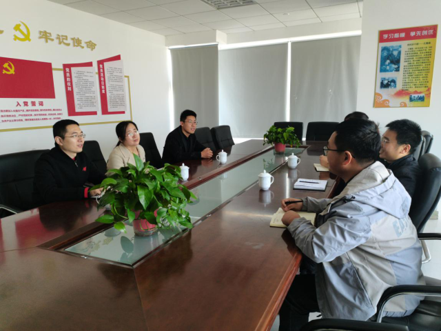 田明栋与相飞畅聊工作、生活状况,畅叙师生情谊,表达了对公司和老师的培育感恩之情。在交流中,相飞了解到田明栋目前工作于大众网运营部,主要负责对接政务项目,如扶贫、经济等工作,能够很好地适应自己当前的工作。